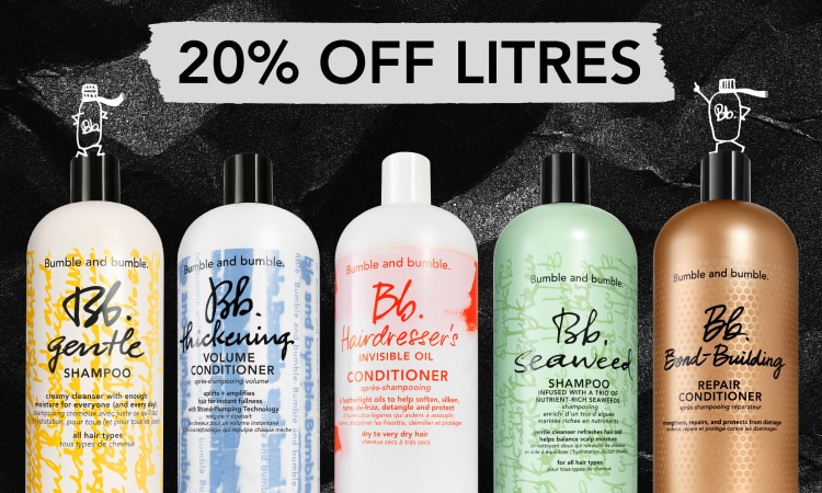 Restock your routine with 20% off litre-size shampoos + conditioners.